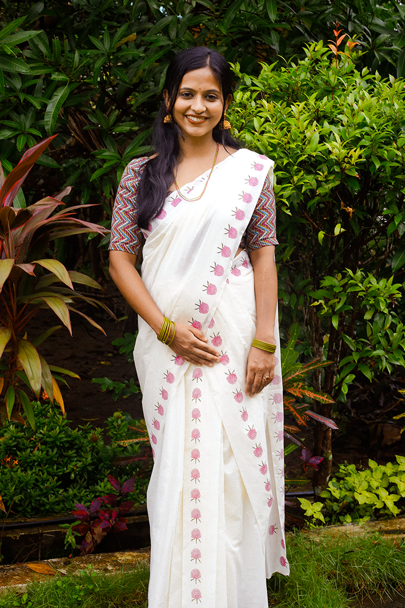 Experience the charm of Anachandham, a beautiful Kerala traditional set mundu that reflects Kerala’s vintage tradition. This elegant traditional set mundu (mundum neriyathum) features a unique printed border design that adds a graceful and stylish touch to classic Kerala attire. Made from premium pure cotton, this set mundu offers excellent comfort, breathability, and a soft, graceful drape that feels light and comfortable throughout the day. The elegant printed motifs enhance the traditional beauty while keeping the design simple and classy. “Set Mundu with Blouse” gives you a complete traditional outfit. Anachandham comes with matching printed blouse material made from pure cotton, perfectly complementing the set mundu design and creating a stunning traditional look. This set mundu is perfect for women who love authentic Kerala tradition with a modern, elegant style.