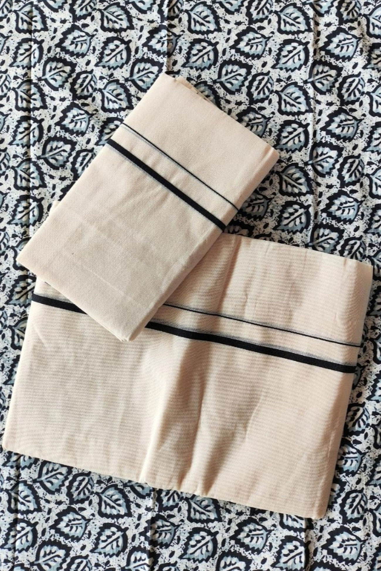 Step into timeless elegance with this classic Kerala traditional set mundu. There is nothing quite like the graceful drape of a white cotton mundu, and our Black Puliyilakkara edition brings Kerala’s vintage tradition to life with a contemporary twist.
