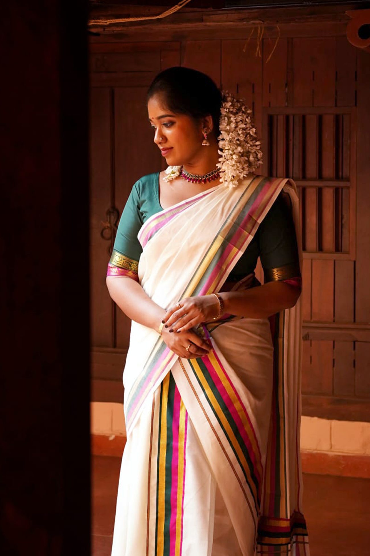 This is more than just traditional wear—it is a thoughtfully curated set. Black Temple represents Kerala’s vintage tradition, made comfortable for everyday elegance. Crafted from premium pure cotton, the fabric offers excellent comfort and breathability. Its soft texture creates graceful drapes, giving you a refined and flattering silhouette.