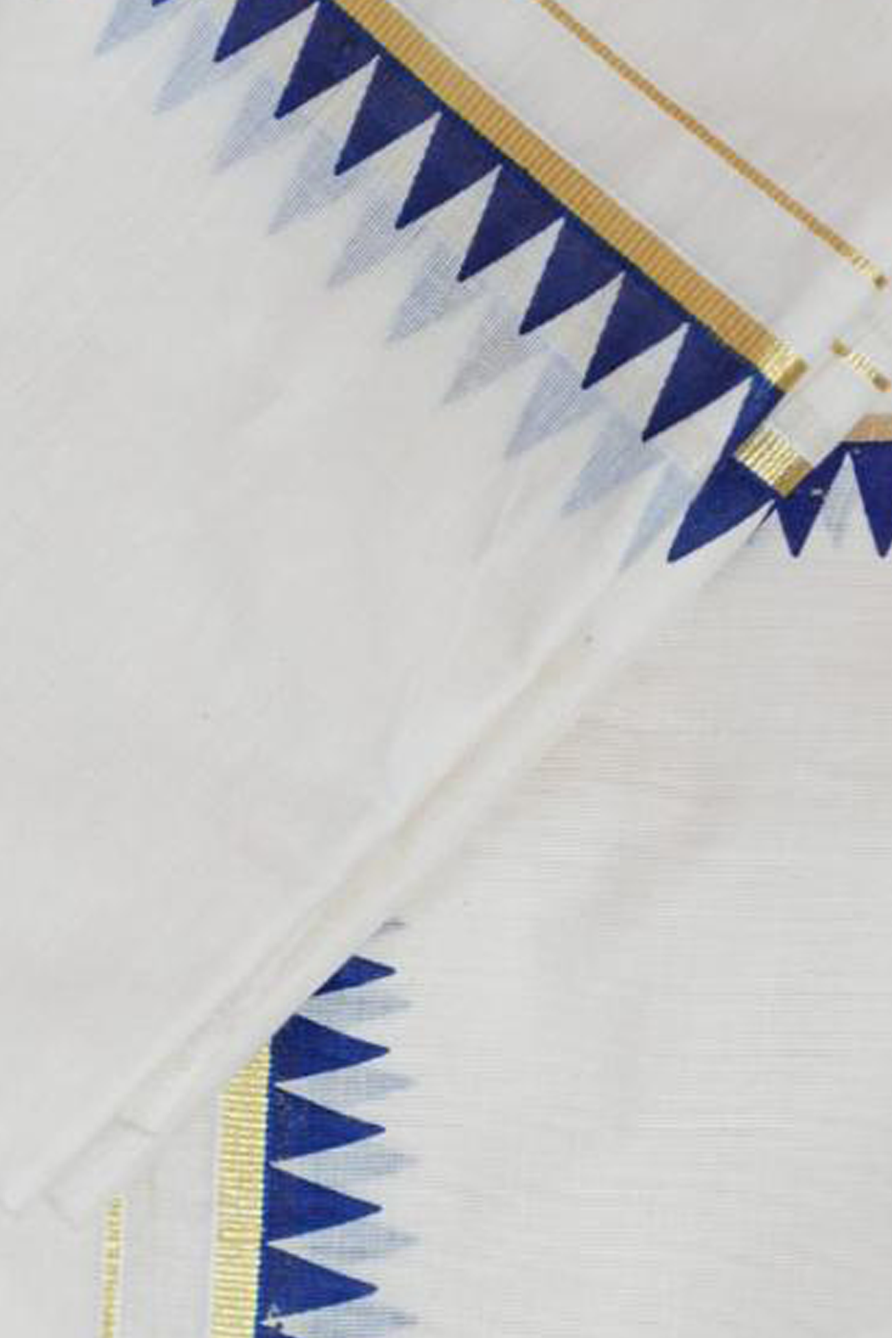 Celebrate the divine grace of Kerala with Blue Temple, our exquisitely crafted Kerala traditional set mundu. This complete ensemble reflects the timeless elegance of traditional attire, designed for the modern woman who values both comfort and culture. It is perfect for festive celebrations, temple visits, and formal occasions.