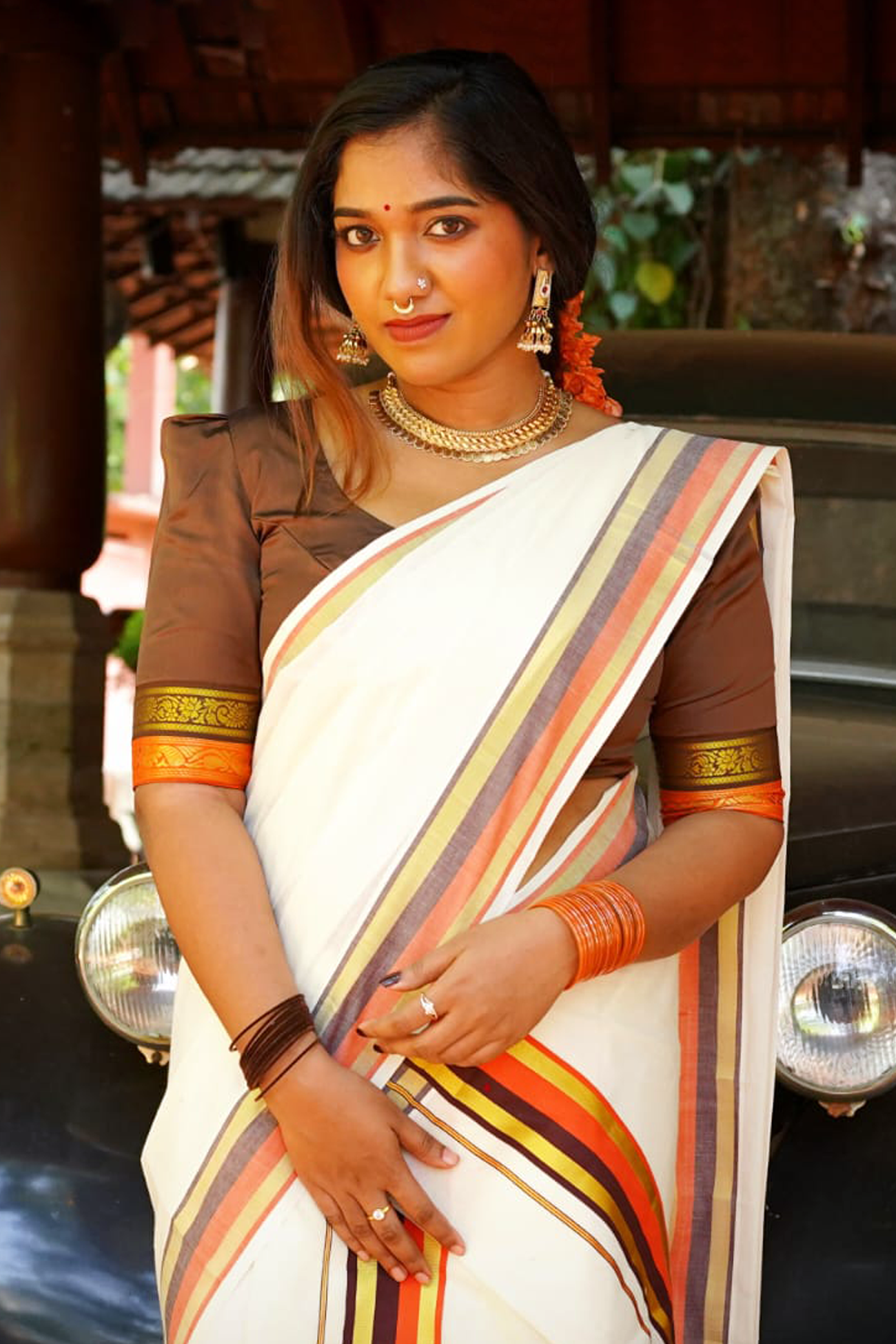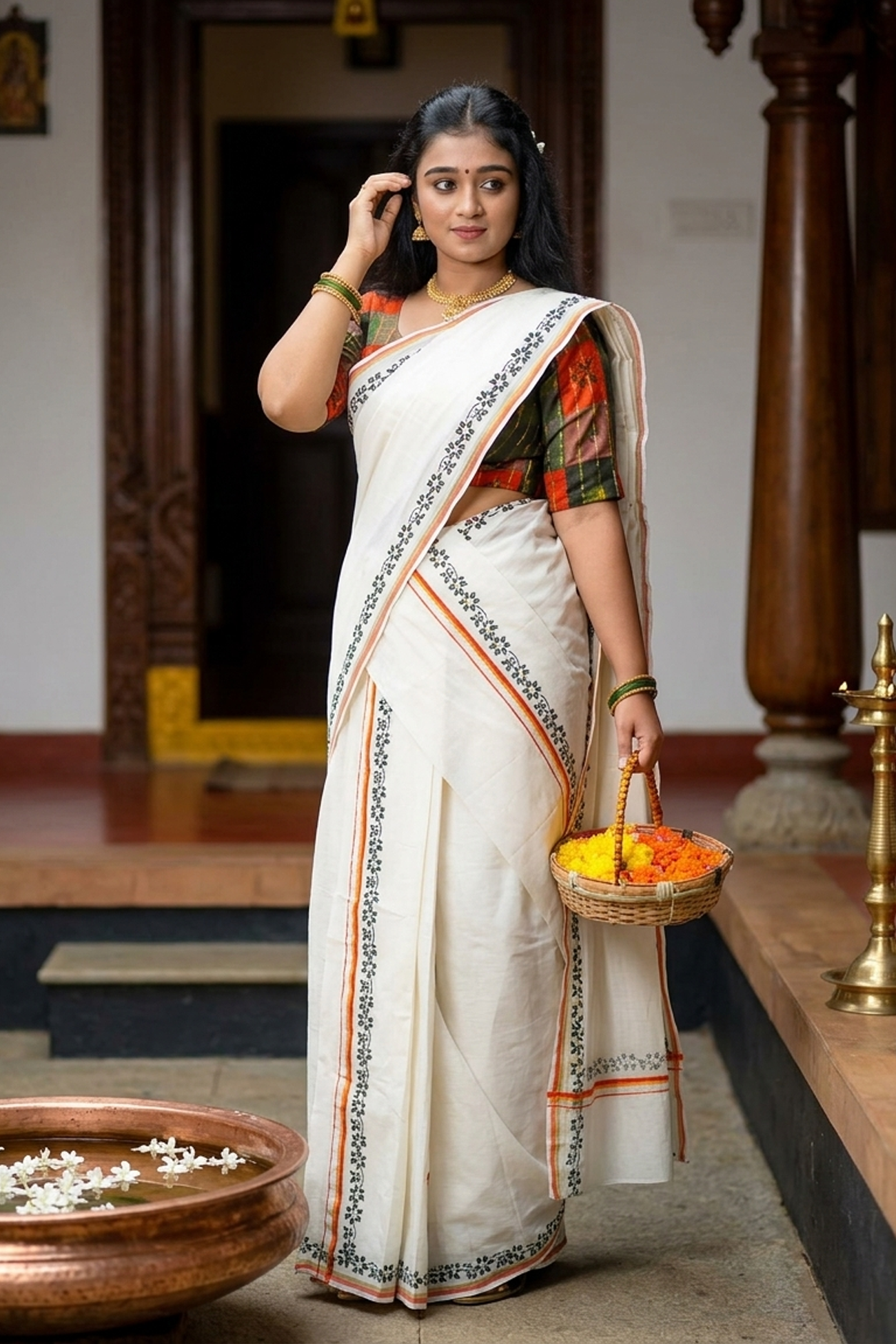 Welcome the beauty of Kerala’s vintage tradition into your wardrobe with Deepika, a stunning expression of elegance and grace. More than just traditional wear, this ensemble reflects refined style and timeless charm. Named Deepika (meaning “light”), this set is designed to brighten your special moments with classic beauty and modern appeal.