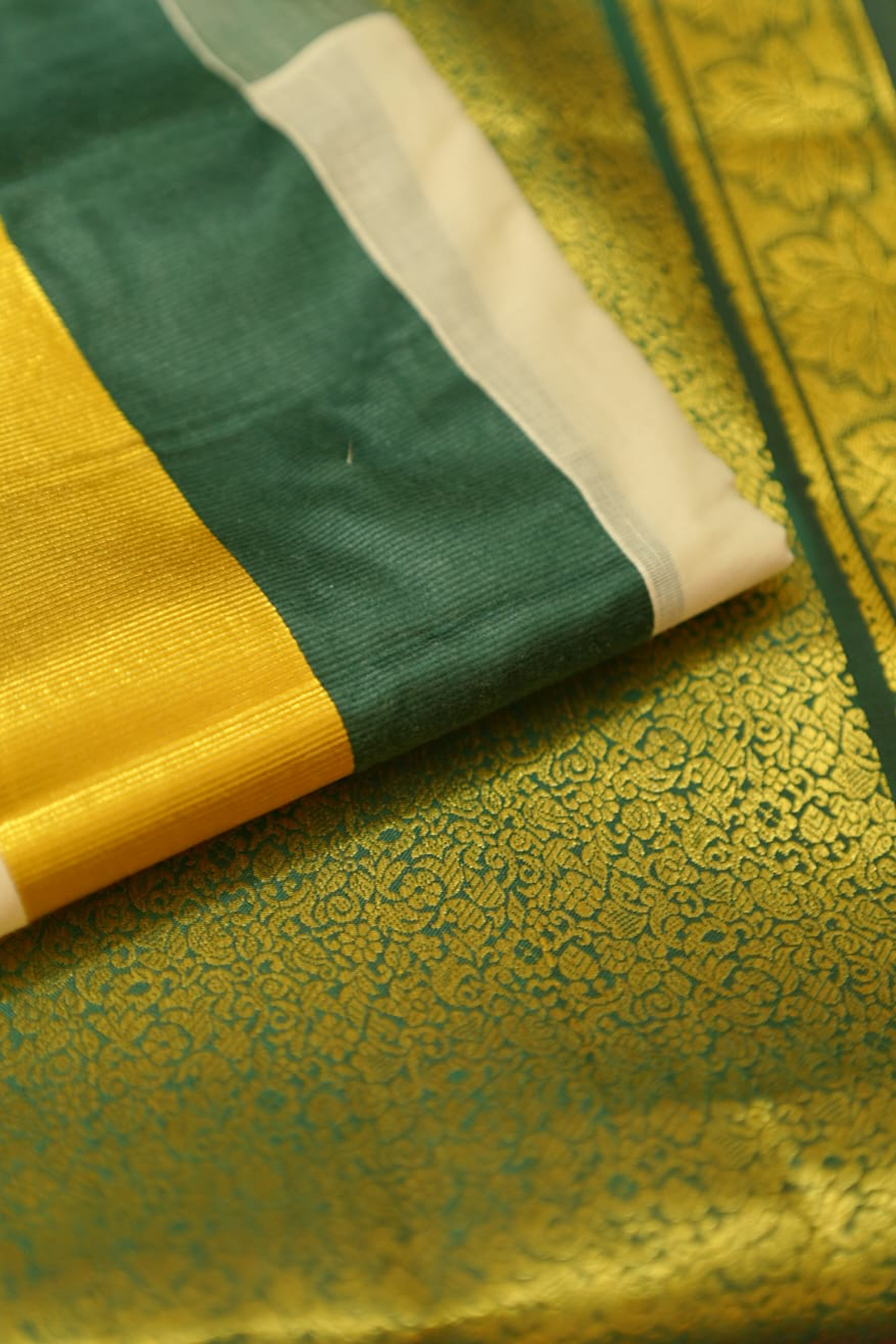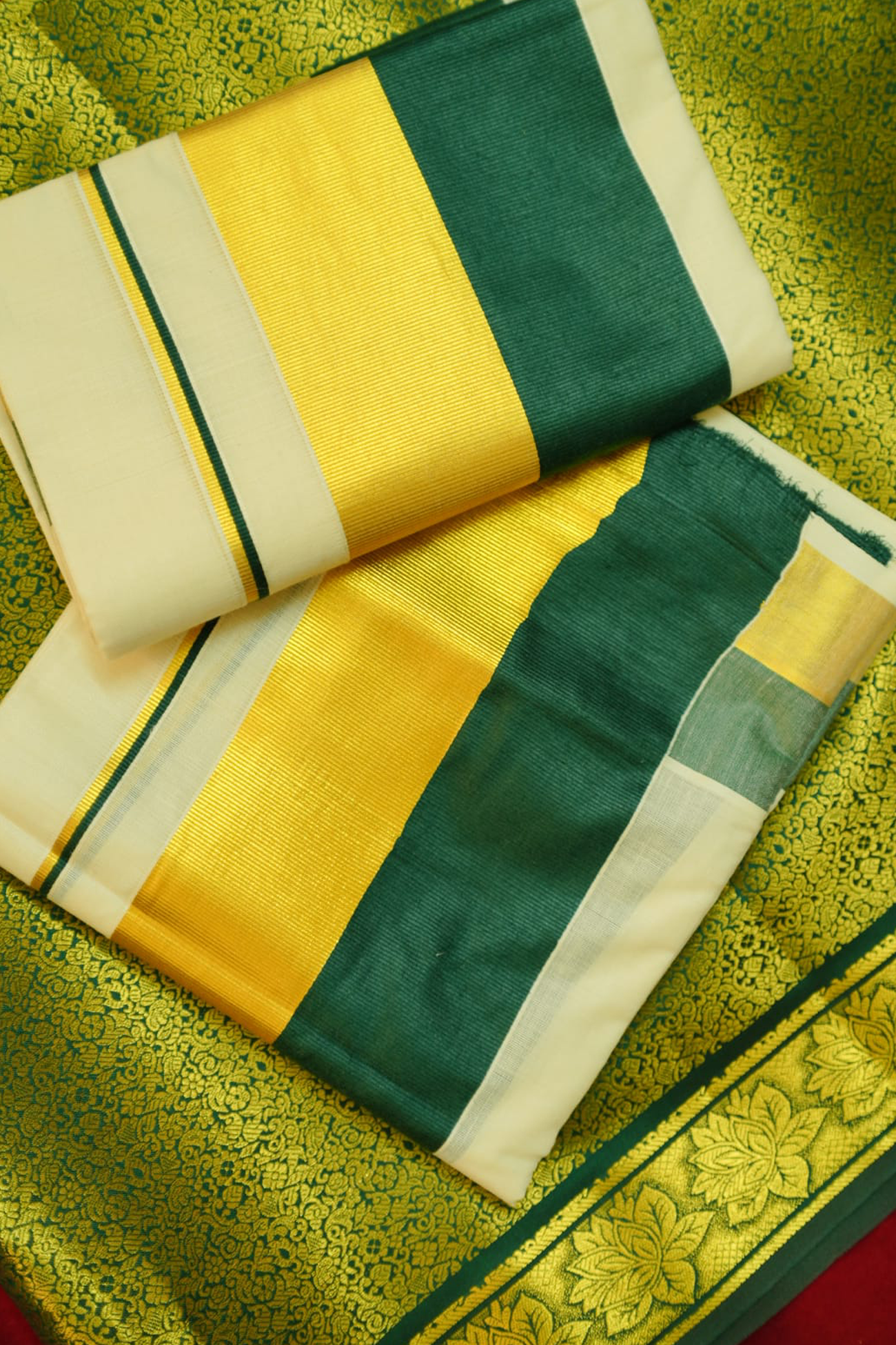 Step into the grace and charm of Kerala with our beautiful Green Kasavu set mundu. This elegant ensemble reflects Kerala’s vintage tradition, thoughtfully reimagined for the modern woman. It is perfect for weddings, festivals, and special occasions where you want to celebrate heritage with style.
