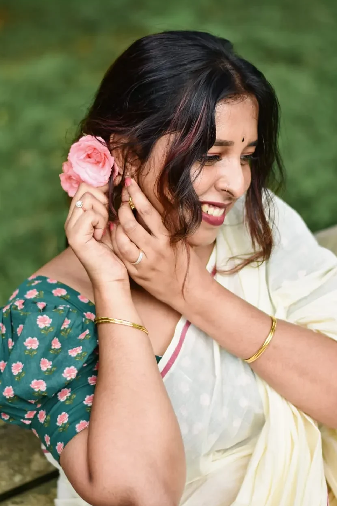 Lightweight, luxurious, and versatile, Keya is ideal for festive occasions, weddings, and elegant gatherings—a saree that blossoms with charm and grace in every fold.