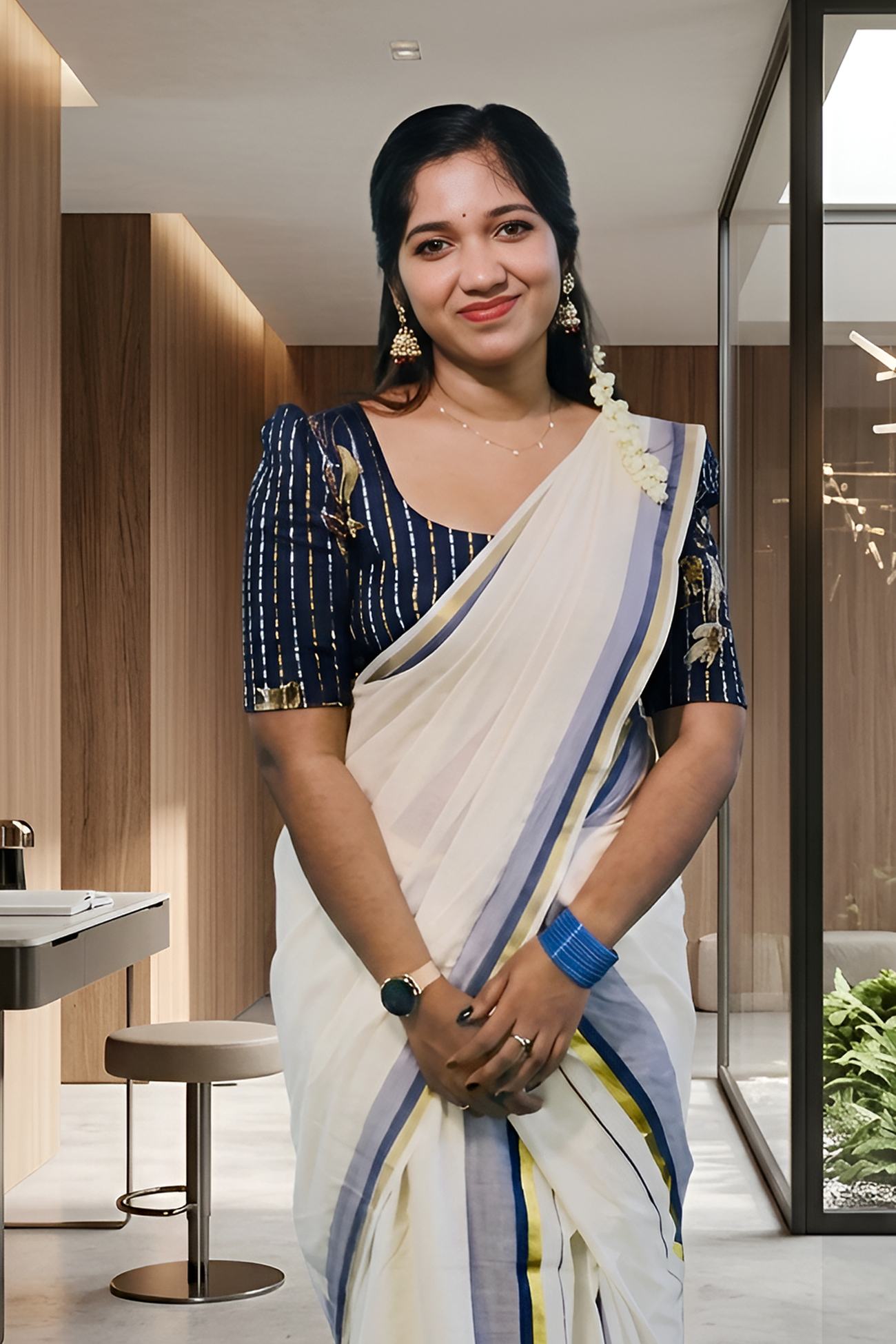 Crafted from premium pure cotton yarn, Neelima is designed for comfort and breathability. The fabric feels soft to the touch and creates graceful drapes, giving a naturally elegant silhouette. The mundu and neriyathu (upper drape) fall beautifully, enhancing its classic appeal.