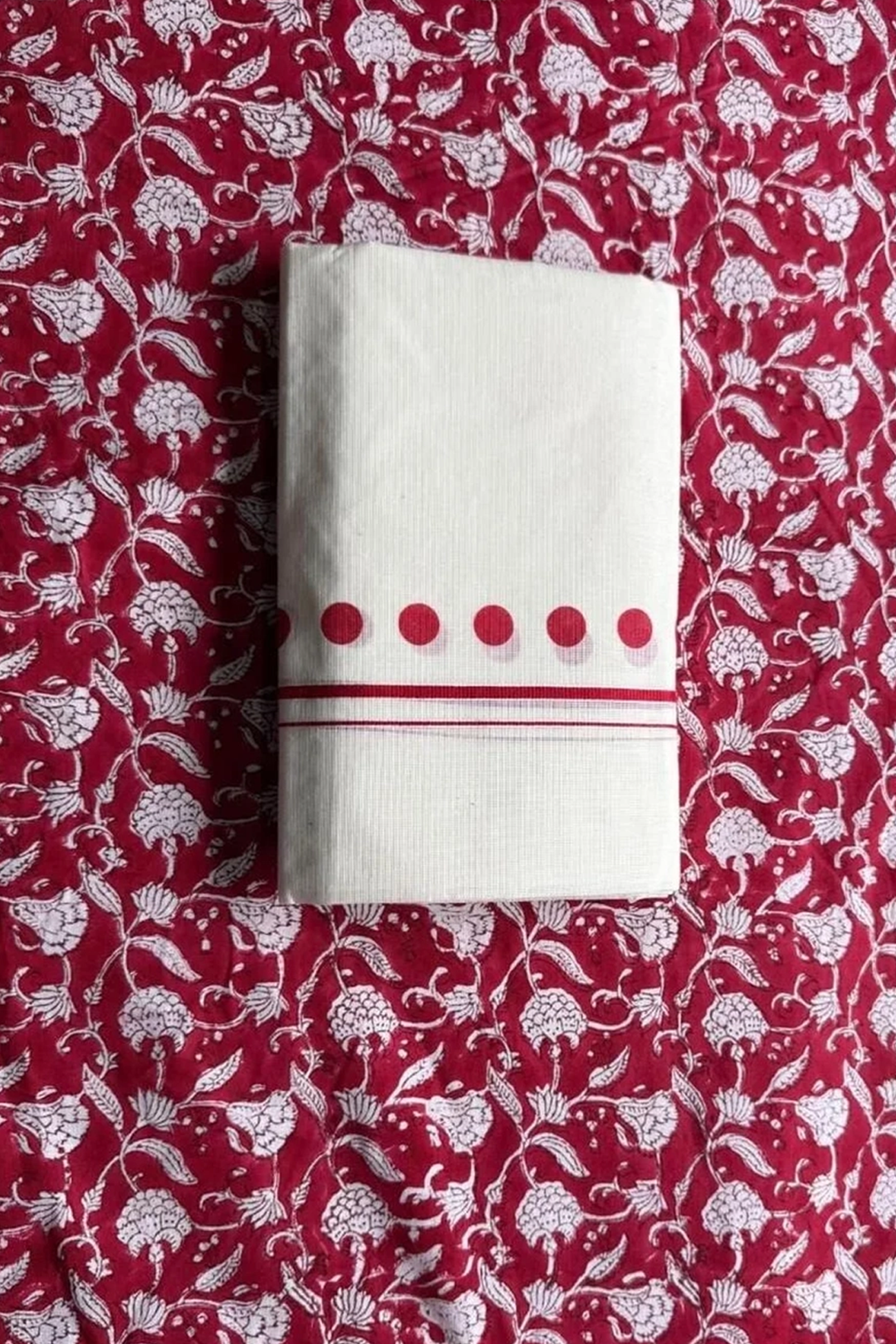 Celebrate the charm of Kerala traditional set mundu with our elegant Red Polka Settu Mundu. Inspired by Kerala’s vintage tradition, this design combines a classic cream set mundu with stylish red polka prints and a beautifully designed matching printed blouse material. Crafted from premium pure cotton, this traditional set mundu offers excellent comfort, breathability, and a soft feel on the skin. The fabric drapes smoothly and gracefully, giving you a refined traditional look. The set comes with matching pure cotton printed blouse material, making it a complete traditional outfit. Settu Mundu with Matching Blouse Material ensures style, comfort, and convenience in one set. Perfect for Onam celebrations, temple visits, weddings, festivals, and cultural occasions, the Red Polka Settu Mundu beautifully reflects the timeless elegance of Kerala tradition.